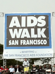 夏の霧が、少し肌寒い朝9時、ゴールデンゲートパーク内、Sharon Meadow広場は、エイズウォークの参加者、ボランティア、協賛企業の方達で、熱気・活気を帯びてきてました。 エイズ撲滅を願い、10kmのウォーキング。