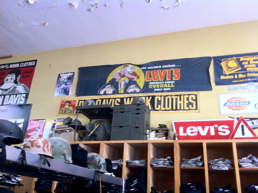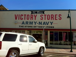 『Victory stores ビクトリーストアー』 は、軍関係の衣料、グッツ・作業着を扱うお店で、とにかく、"ごつい" 物が沢山売っています。 どれも頑丈な作りで、少々乱暴に扱っても平気な感じ、下にどんな物があるか持ち上げるだけでも大変です。