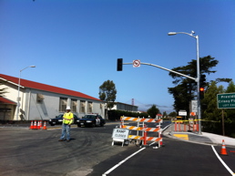 4月30日朝、新しい道路開通 翌日運転して通ってみましたが、見通しも良くなり、トンネルは、明るく自然の光も入り込み、非常ベルも設置され、マリーナ地区とロンバート通りの分岐点は、広くなり戸惑う事無く左右に分かれられるようになった感じがしました。 斜線を変える作業も手作業から専用車両での作業となり、もう荷台に係の人が座ってポールを抜いて差しての風景は無くなりました。