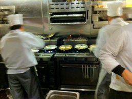 夕方、6時を過ぎると、エグゼクティブシェフが現れ、スーシェフ達の緊張も高まり、私は腹ペコも頂点に達する。