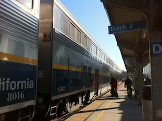 America + Track = "Amtrack" は、全米ネットワークの政府出資の鉄道公社です。 自動車、飛行機の移動も発達しているので鉄道運営は、なかなか厳しいです。 ただ、北東をまわる路線は、何とか乗客を確保している路線でカリフォルニア州には3路線が走っています。 その一つが、キャピトルコリドーです。