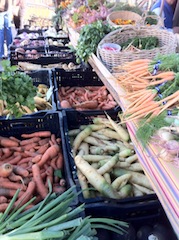↑ "今週のお勧め" の一つの "人参" です。 普段目にするオレンジ色の人参は、19世紀頃フランスで品種改良された物、10世紀頃アフガニスタンで栽培され始め、その頃の色は黄色や白っぽい色でした。 「この人参の色、信じられない。」 って驚いていた子供達。 本日この農家の人参は、オレンジ、濃紅、黄色、白色 でした。 濃紅は金時人参によく似ています。 パリジェンヌキャロットも少々出てました。