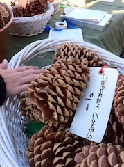 「ママの手より大きいィ〜」 これは、Sサイズの松ぽっくり。 Lサイズを見た女の子は、まるで、"お化け" を見るような目つきになっていました。 だってパパの顔より大きいのですから。 初めてお家でツリーを飾るので買いにやって来たそうですが‥。