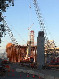 かれこれ10年がかりの工事です。 工事の過程で全面封鎖('09.9)したり、鋼材破損で一時閉鎖('09.10)になったり、タンクローリー横転も近くで起こり('07.4)、タンカーから燃料漏れ('07.10)とイロイロありましたが、早く新しい東側のオークランド線見たい,通りたいです。 自転車レーンもできるんですよ。
