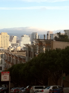 金曜日の夕方7時頃。 家の角から少し南側、空港方面(SFO)に霧が発生してます。 ここんところいい天気が続いていたので、明日の朝は、霧が出るかもしれません。