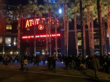 球場からバス路線にそって歩き始め、ジャイアンツが勝った日は、知らない人同士でも和気あいあいとマーケット通り方面歩いてゆきます。 ユニオンSQまでやって来て。