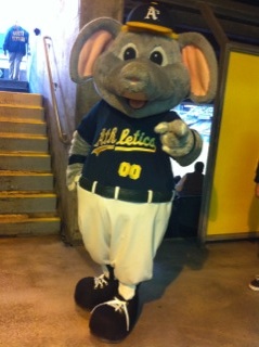 マスコットの象さんです。 A'sユニフォーム袖に『白い象さん』 がついていますが、昔、NYジャイアンツに "白い象" とコケにされ、逆にそれをマスコットとして採用。 ⇒ 白い象って役立たずの意味。