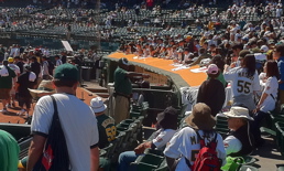 "コロシアム" とよんでいる人が多いですが、収容人数34.077人。 小さいと言われるボストン・レッドソックスの球場より4700人ほど少ないだけですが、昨シーズン観客数が、ボストンで約300万人に対して、コロシアムは、140万人。 全リーグで少ない方から2番目で、かろうじて "最も" ではなかった。 SFジャイアンツは、ボストンと同じくらいの集客数でした。 今回のマリナーズ3連戦の開幕戦は、売り切れとなりましたが、土曜、日曜日は、当日券あり。