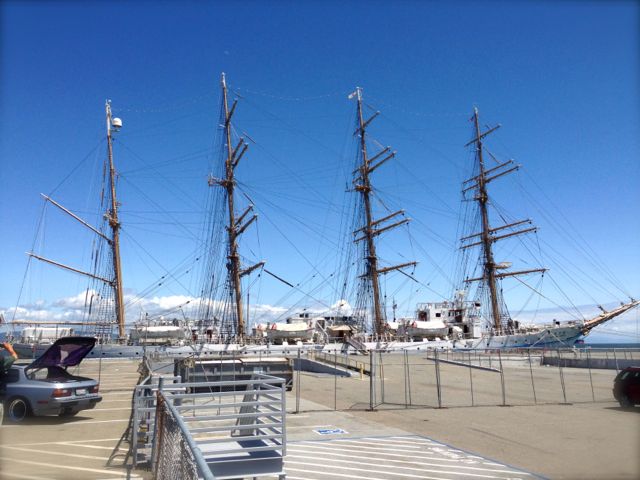 何と、バイ・ザ・ウインド(風の関係)で5月3日にサンフランシスコ港に入港していた海王丸。