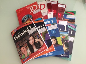 学校によっては科目ごとに、例えば、スペイン語:赤