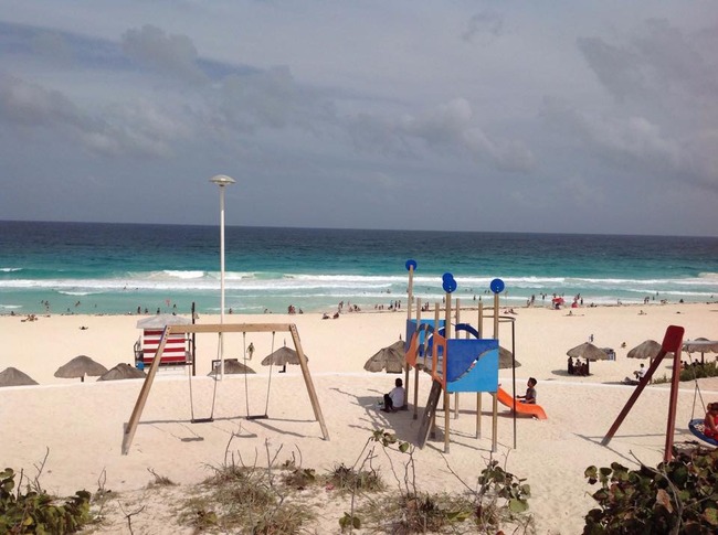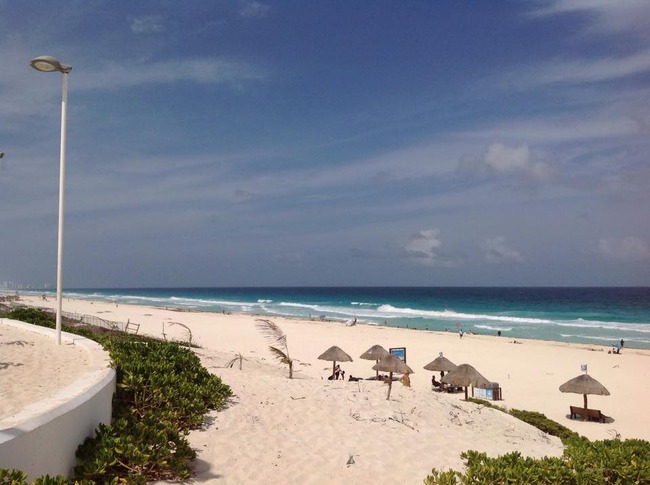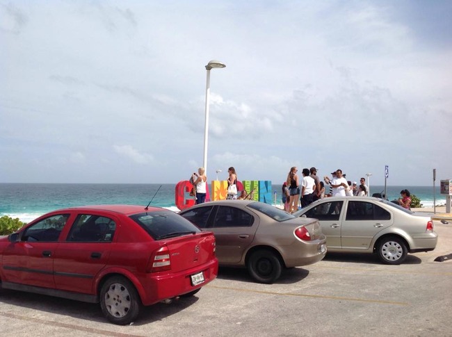 青い海をバックにカラフルな文字でCANCUNを見ると、あ~カリブ海!と