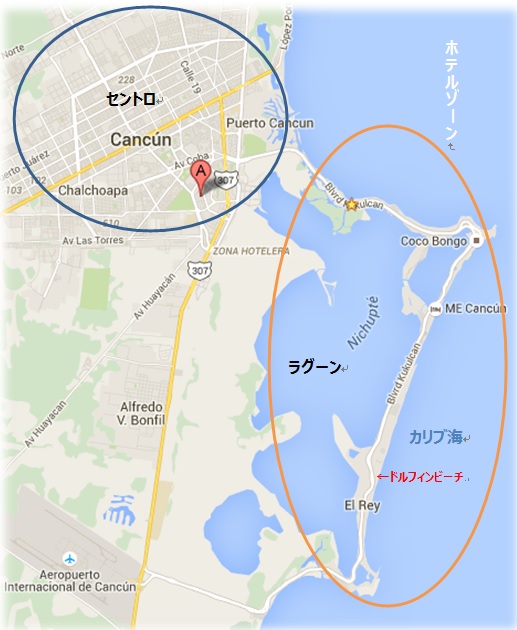 カンクンは大きく二つ セントロ(ダウンタウン) とホテルゾーンに分かれています。