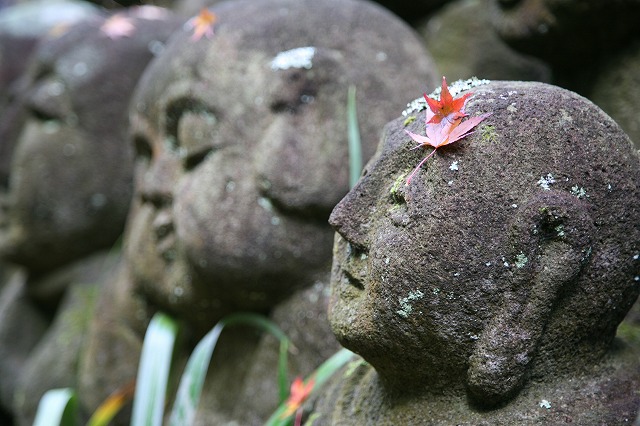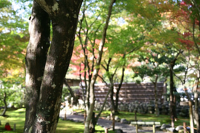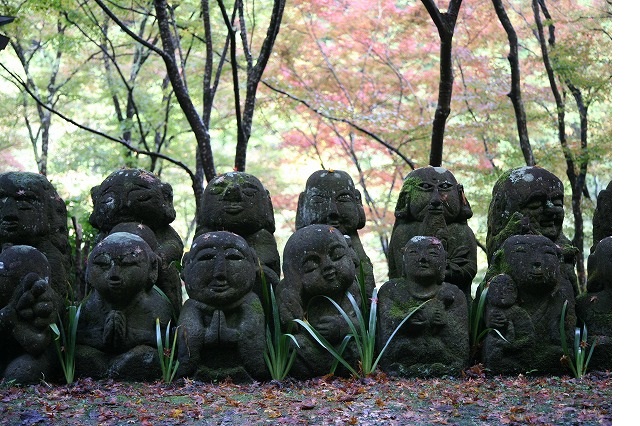 二つの念仏寺の石仏様と羅漢様は、静かに紅葉を眺めておられます。