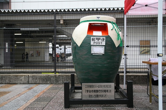 宇治駅前の郵便ポストは、茶壺の形です。 \(^.^)/