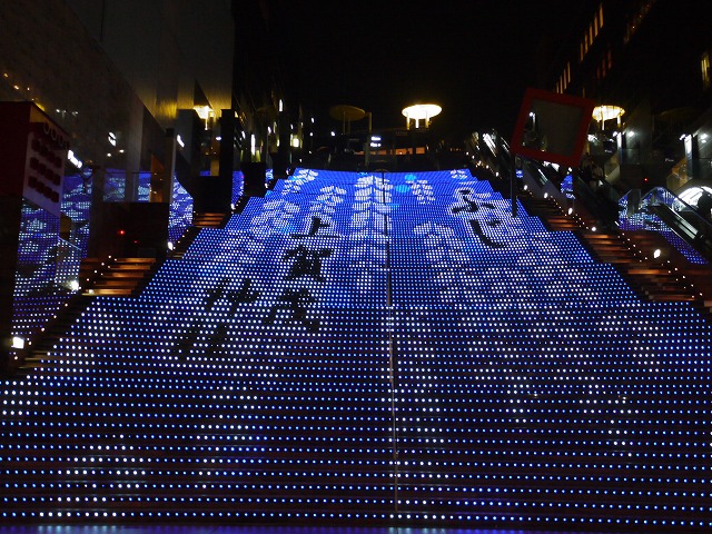 この時期の、駅ビル大階段・グラフィカルイルミネーションには、