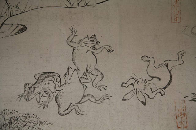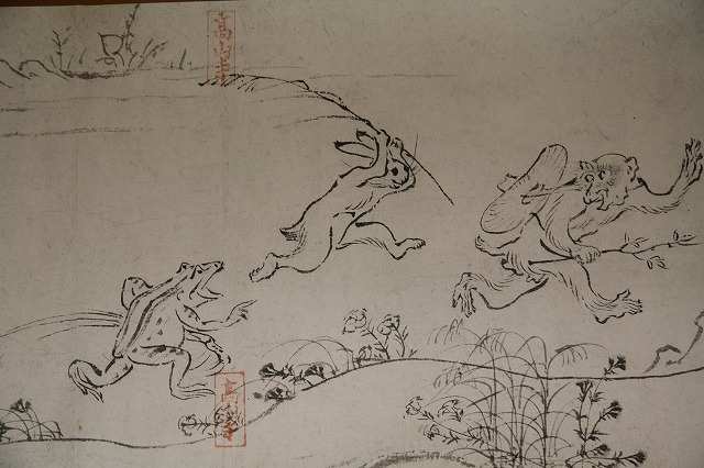 鳥獣人物戯画は、動物や人物を戯画的に描いたもので 特にウサギ・カエル・サルなどの