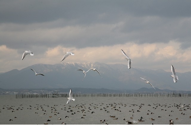 湖上や琵琶湖畔に集まっています。