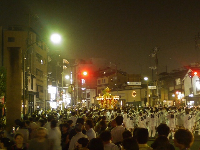 この夜、17日に八坂神社から出た三基の御神輿が帰って来ました。