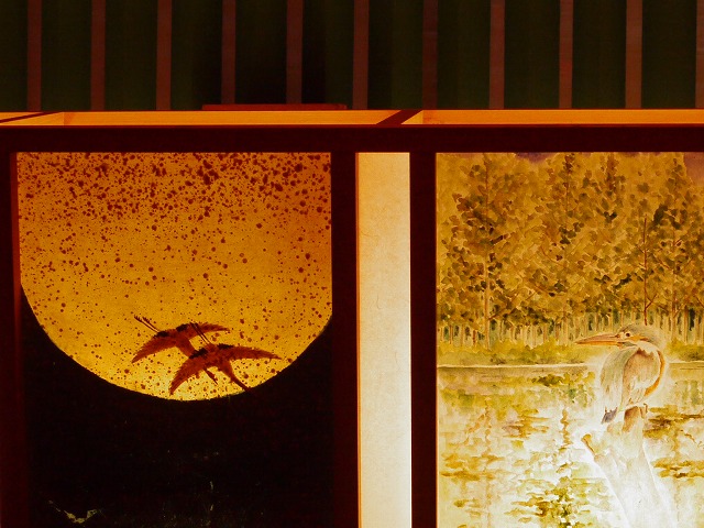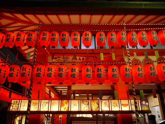 本殿をはじめ、建物に並べられた 行灯(あんどん)には、美しい絵がありました。