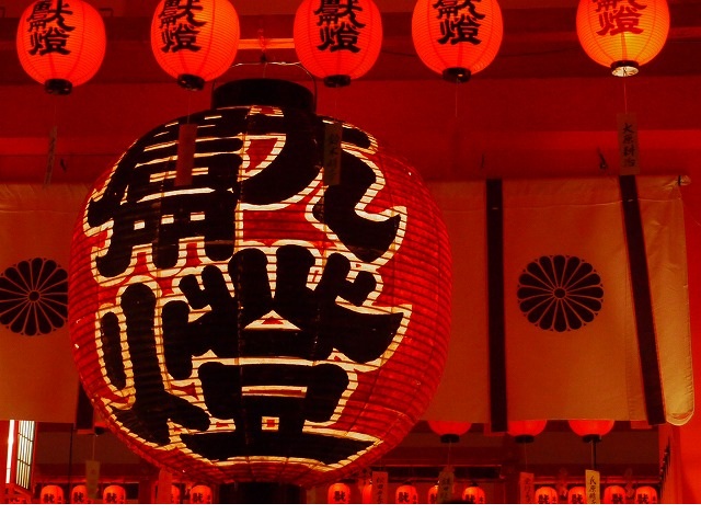 参道から境内には、約五千個の提灯が 灯っています。