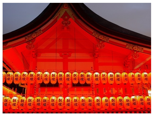 この夜は、稲荷山をはじめ 境内全域の灯篭と数千灯の献納提灯に