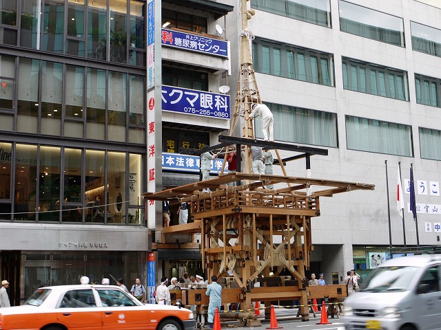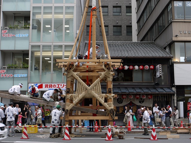 祇園祭の鉾の組立が、各鉾町で始まりました。