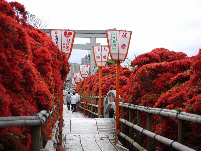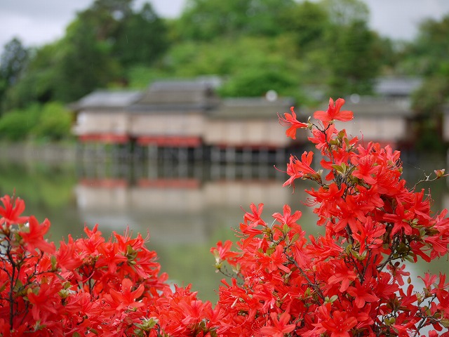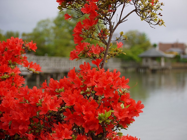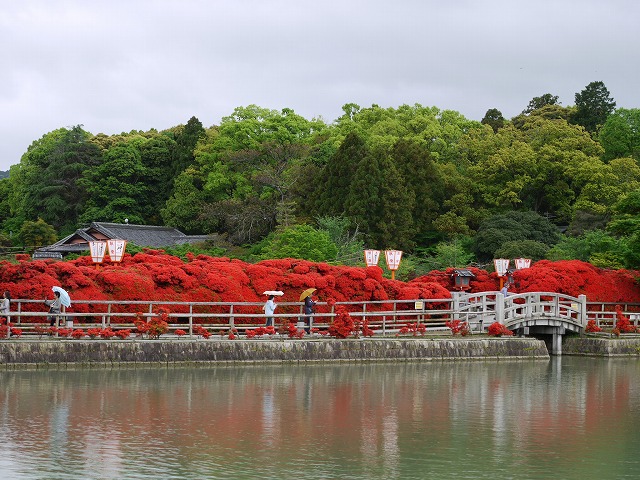 連休の『長岡天満宮』「八条が池」には 見頃を迎えたキリシマツツジが