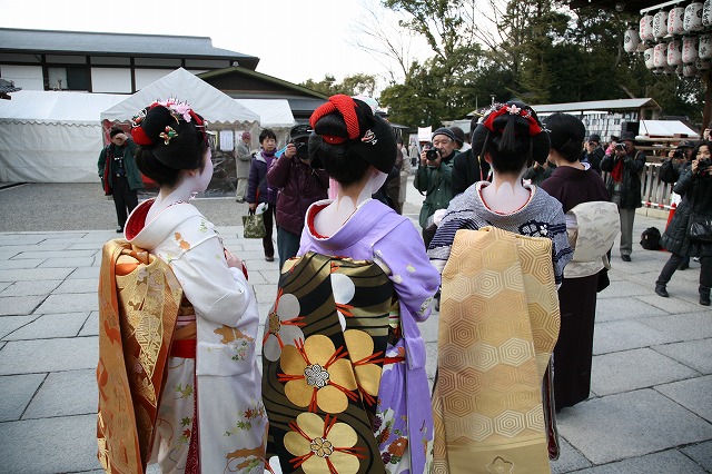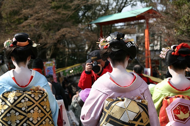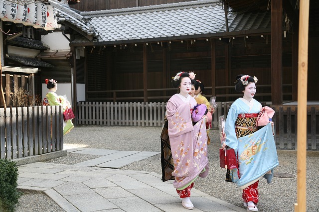 豆まきの後 舞妓さん達は、境内を歩いておられました。