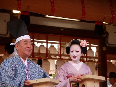 三日の午後一時は 祇園甲部の舞妓さんの奉納舞踊でした。