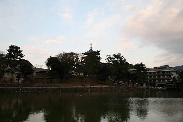 奈良・興福寺の五重塔が見える、猿沢の池です。