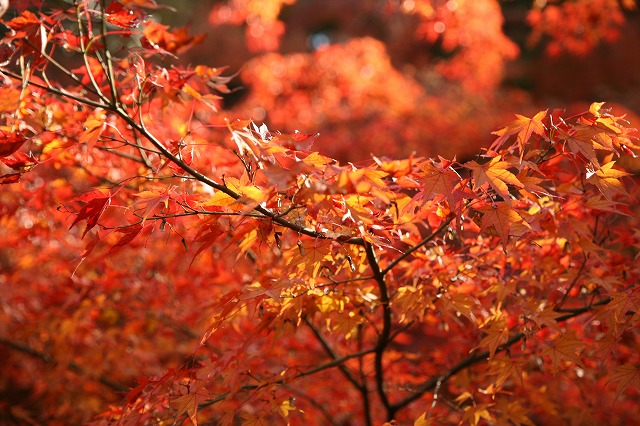 通天橋前の、もみじ渓谷には 美しい彩りの世界が 広がっていました。