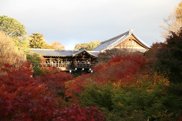 東福寺の、もみじと言いますと 境内の渓谷を渡る橋・・・