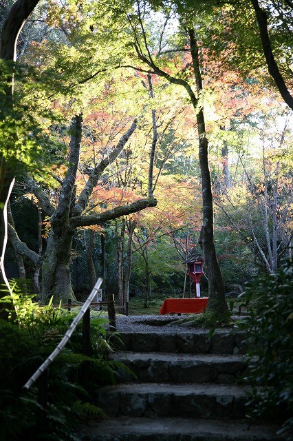 夕暮れの 光りの中に 境内・・・そして もみじが ありました。