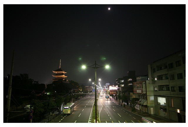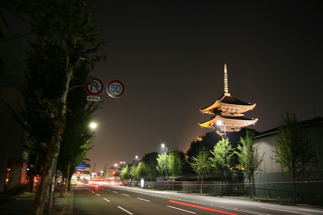 東寺の五重塔が 光りの中に 浮かび上がっていました。