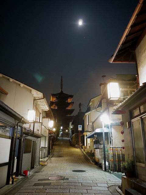 この夜、念願が叶い 八坂の塔の真上に昇った月と 出会えました。