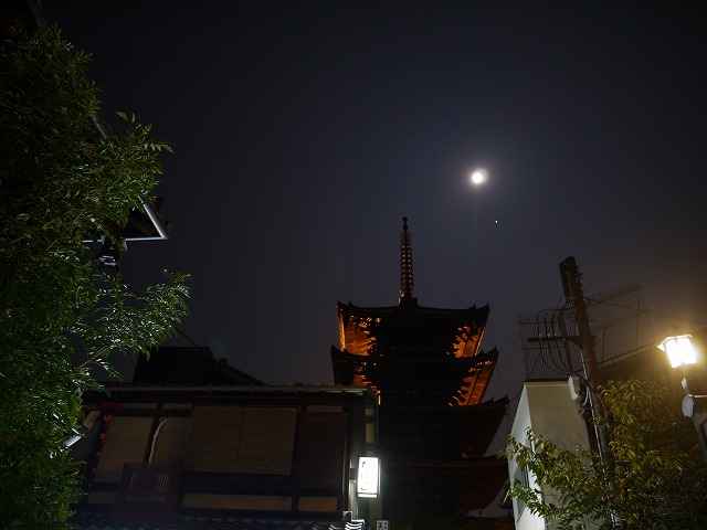 月の位置から想像すると、八坂の塔の 真上の月が 見られるかも 知れません。