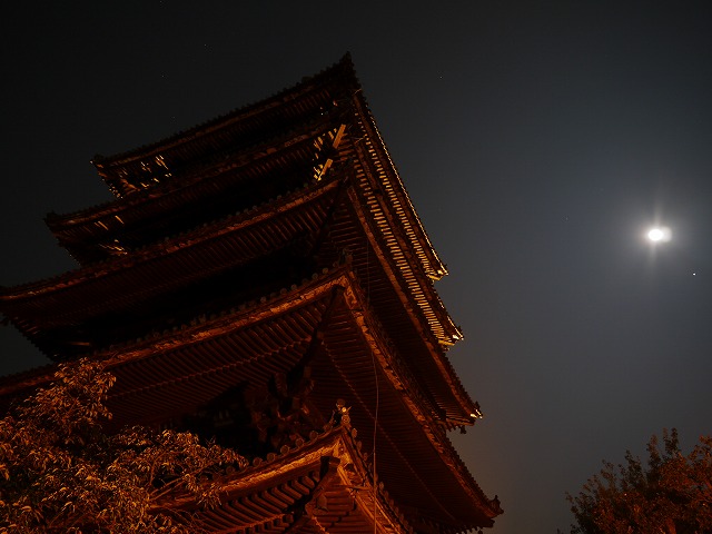 夜空に浮ぶ月と五重塔を、見たくなって 出かけて来ました。