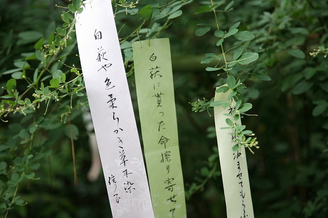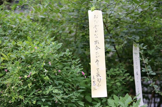 萩まつり・・・・・・・萩の枝に吊るされた 短冊が、優しく揺れていました。