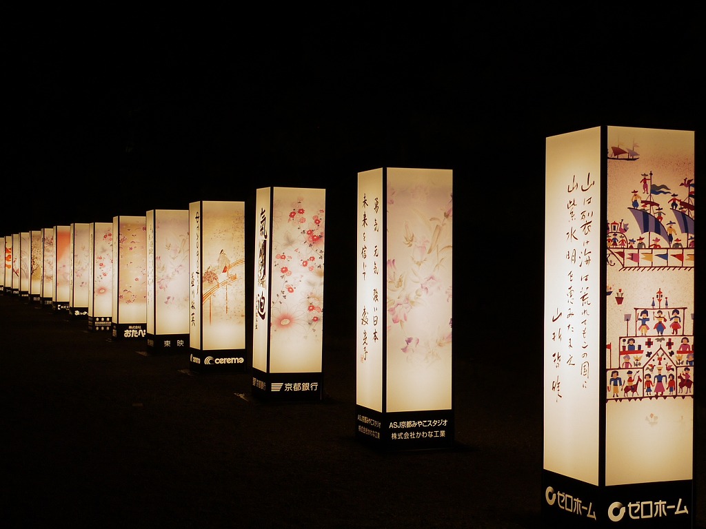 灯りには、京都ゆかりの著名人からの 復興への願いや