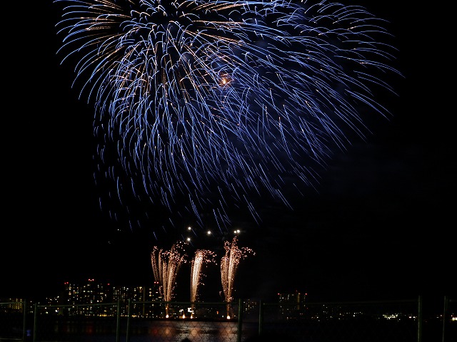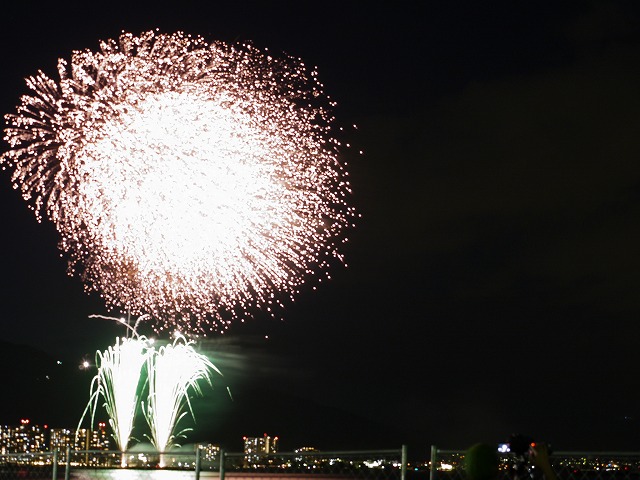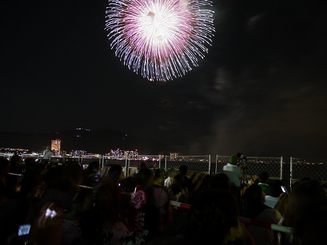 浜大津港に設置された ニケ所から 約一万発の花火が 上がります。