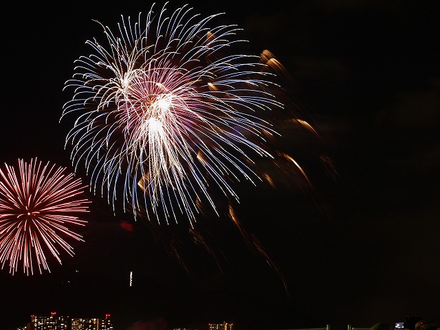 夜7時半に 一発目の花火が夜空に 上がりました。