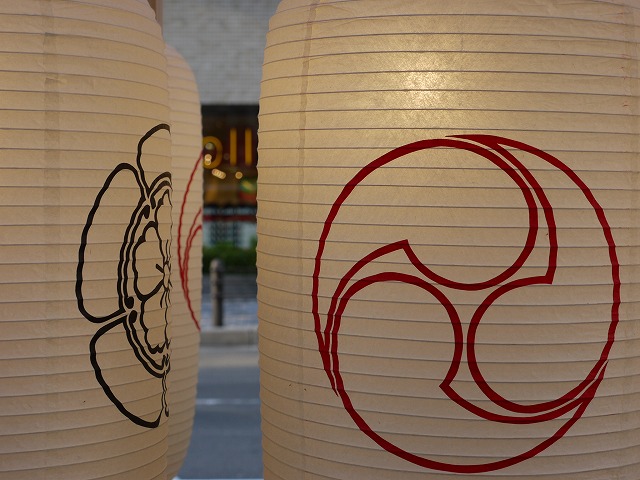 青空と、点燈し始めた提灯の灯りが綺麗でした。