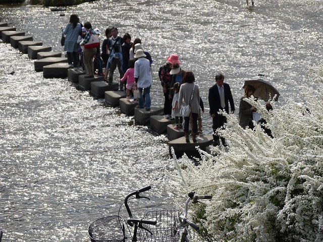 加茂川沿いには 真っ白な ユキヤナギ の花も 咲いていました。