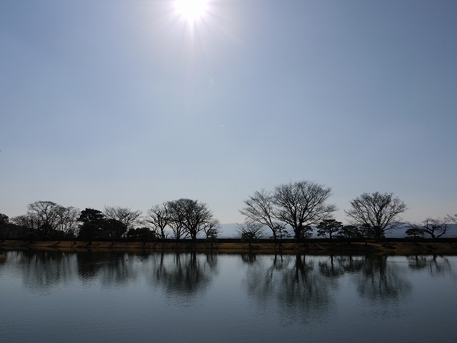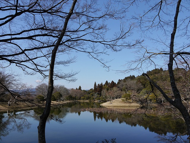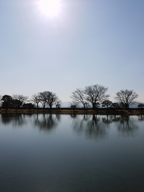 池には 比叡山麓の山々と 青い空が 映っていました。