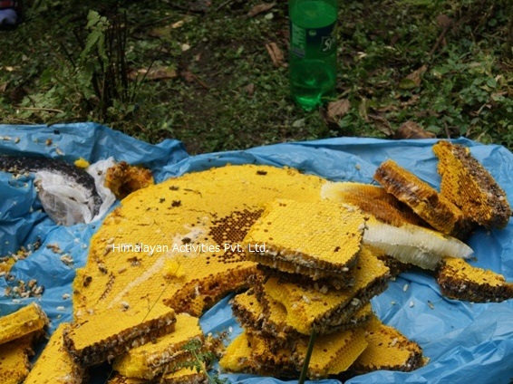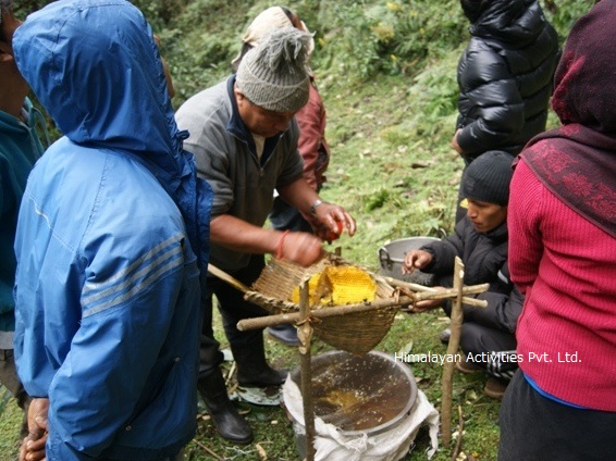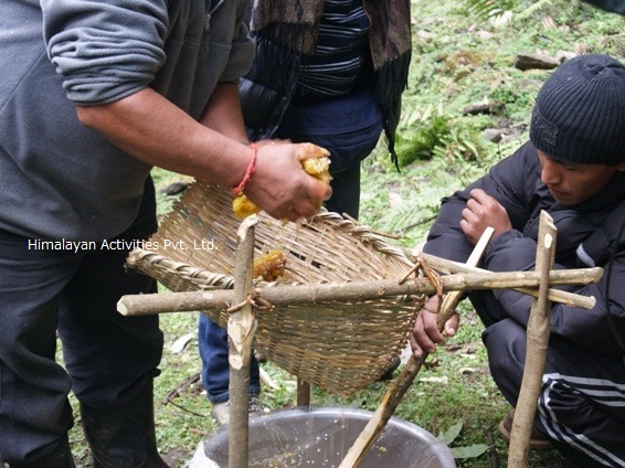こんな感じで進められていくハニーハンティング。よい蜂蜜が取れるのは、春と秋(初冬)の年2回だそうです。