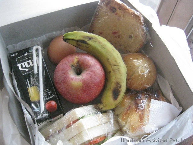 しかし、ネパールでは、通常どのホテルでも、事前にリクエストしておけば、朝食代わりの軽食をパックしてくれ、早朝出発時に渡してくれるサービスがあります。(朝食付きプランで予約している場合のみ)