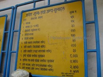 動物園の入口にある料金表。ネパール語ですが、、、。