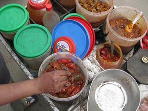 作り方は簡単。アチャールにしたい食材をを適当な大きさに切り、日干しした後瓶などに詰め、スパイスを油でじゅっと焦がしてから、瓶にそそぎいれます。蓋をしっかり締め、太陽の下に何日か置いておくと次第に発酵が進み、適当な酸っぱさになったら食べ頃になります。