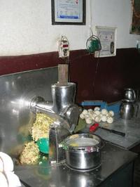 写真のような果物屋さんの奥で、いろいろな果物をミックスして、搾りたてのジュースを作ってくれるのです。氷は入っていないので生ぬるい味ではありますが、冷たすぎないのがかえってよいかも。