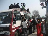 交通ルールによると、市内バス運行の際、通常は屋根に乗客を乗せたり、ドアを開けっ放しにしたままで運行することは認められていないようなのですが、現在は、車内に詰め込めるだけ詰め込んで運行している状況で、屋根まで乗客があふれていようが、出入り口の階段まで人がぶら下がっていてドアが閉められない状況であろうが、交通警察も大目に見ているようです。(かなりエキサイティングな光景で、乗ってみたくなる旅行者の方もいるかもしれませんが、危機管理的にはかなり危険です)
